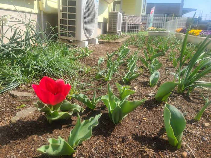 2週間前にひとつだけだったチューリップが